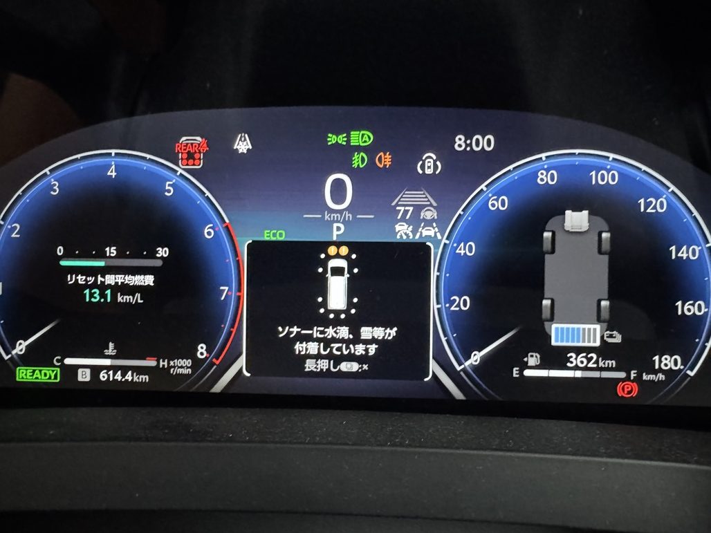 警報の通り、フロントグリルにある2つのソナーと、フロントカメラに着雪により使用不能となりましたが、